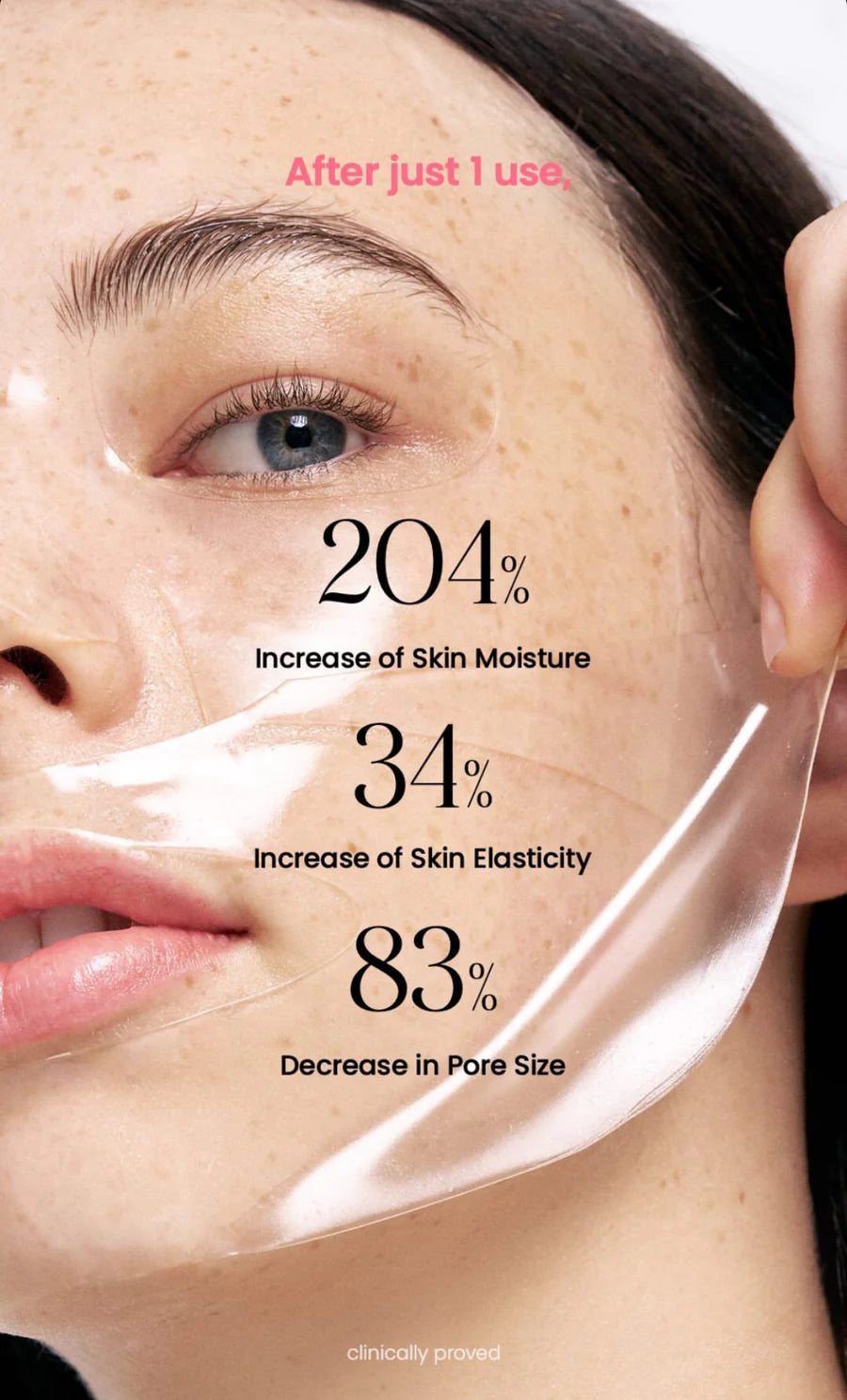 A: Bio Collagen Real Deep Mask is a hydrogel mask molded with essence to provide hydration. Longer use enhances absorption of beneficial ingredients and the excellent adhesion overtime make them suitable for overnight or 3-4 hours during the day.